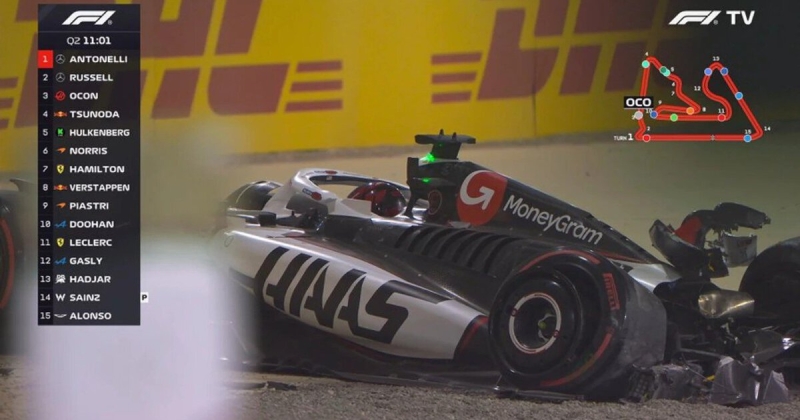 Пилот «Хаас» Эстебан Окон попал серьезную аварию на старте второго сегмента квалификации к Гран-при Бахрейна.